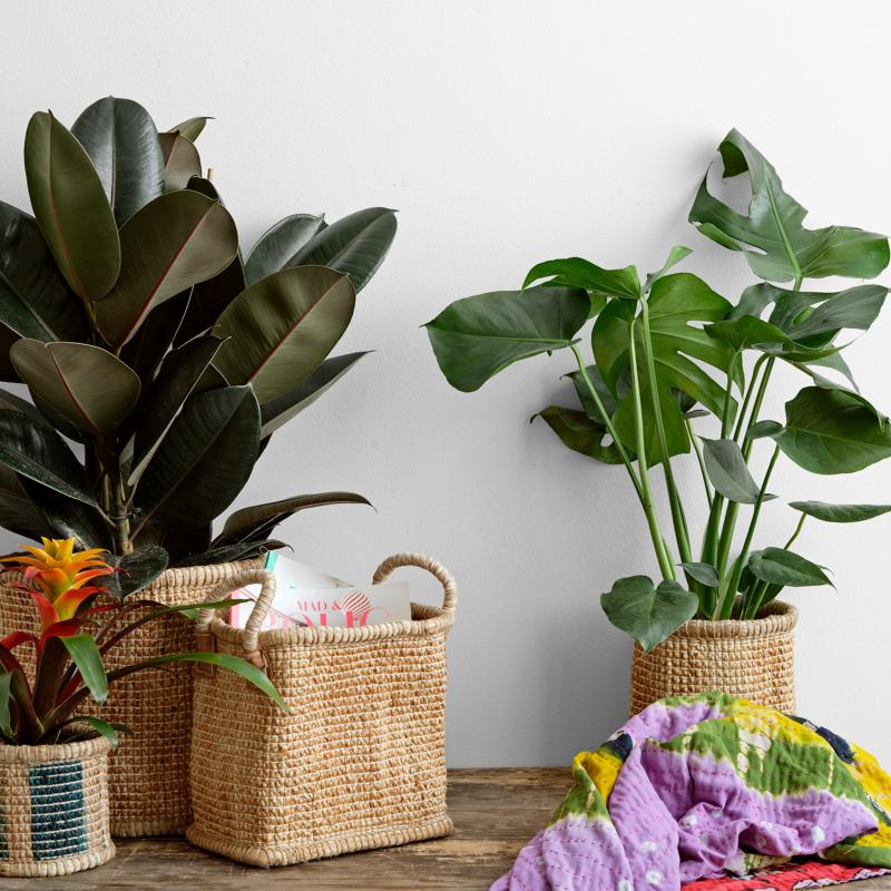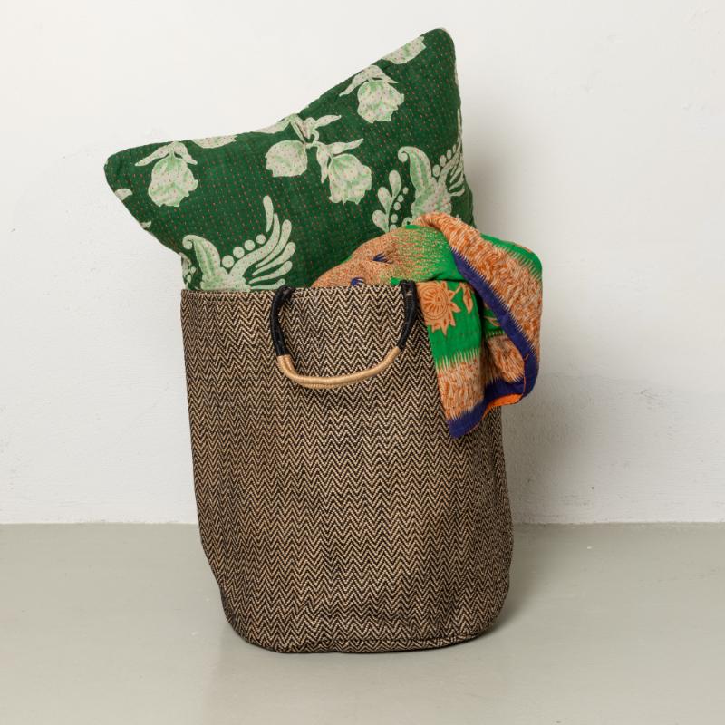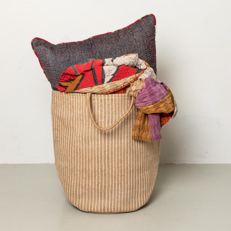 arrow_backTil oversigtenVores populære kurve er flettet af jute, hvoraf nogle af dem også har indflettede trevl af vintage sarier, for at give et flot farverigt look.