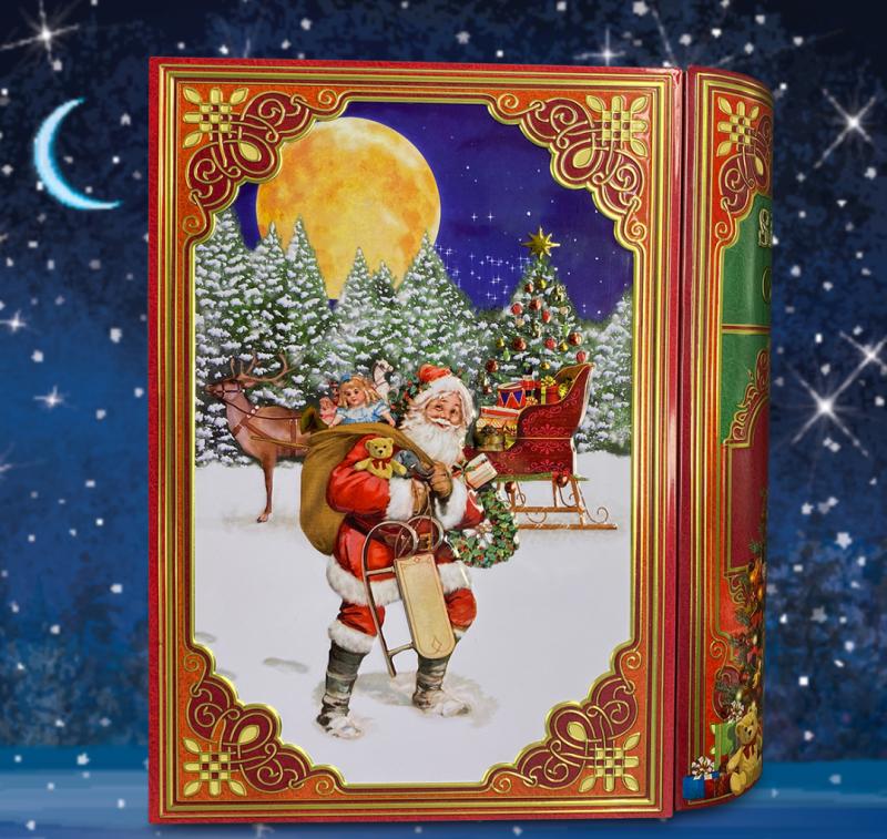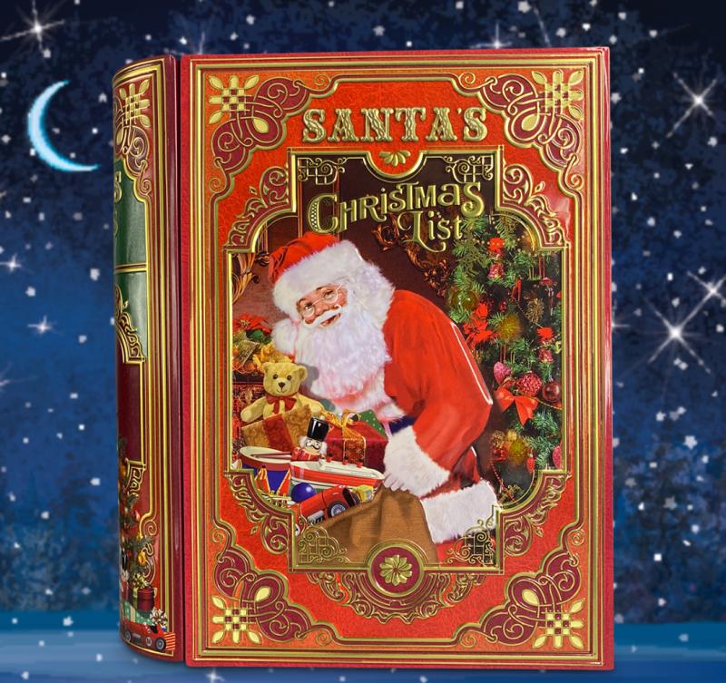 Kagedåse Julemandens store julebog, skal du bare åbne og fyld den med julens lækkerier.