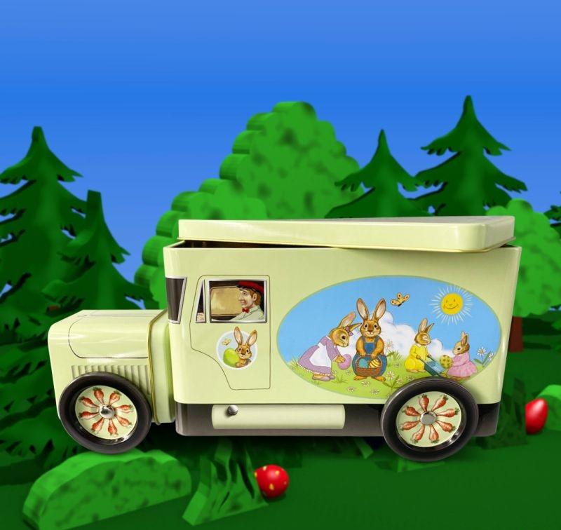 Kagedåse Påskehare lastbil med 2 rum til påskeæggene.