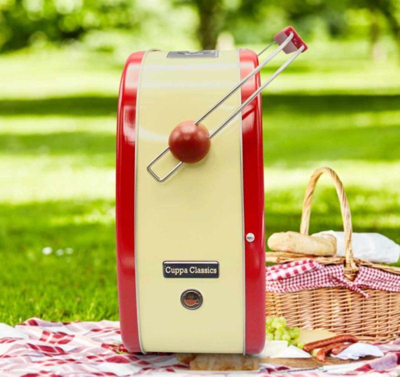 Kagedåsen er flot udformet som en gammeldags radio med programmerne til højre i fronten, knapper afbilledet i toppen, og antennen gemt på bagsiden.