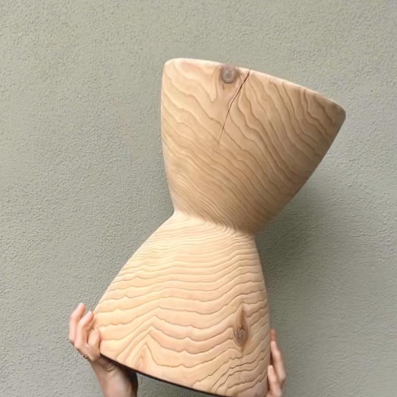 Møblet er et enkelt, skulpturelt design objekt, som i sit design er simplificeret til det essentielle. Designet fremhæver træet som et levende naturmateriale, gennem de karakteristiske sprækker, åretegninger og knaster, der giver hvert produkt et naturlig, taktilt og unikt udtryk.