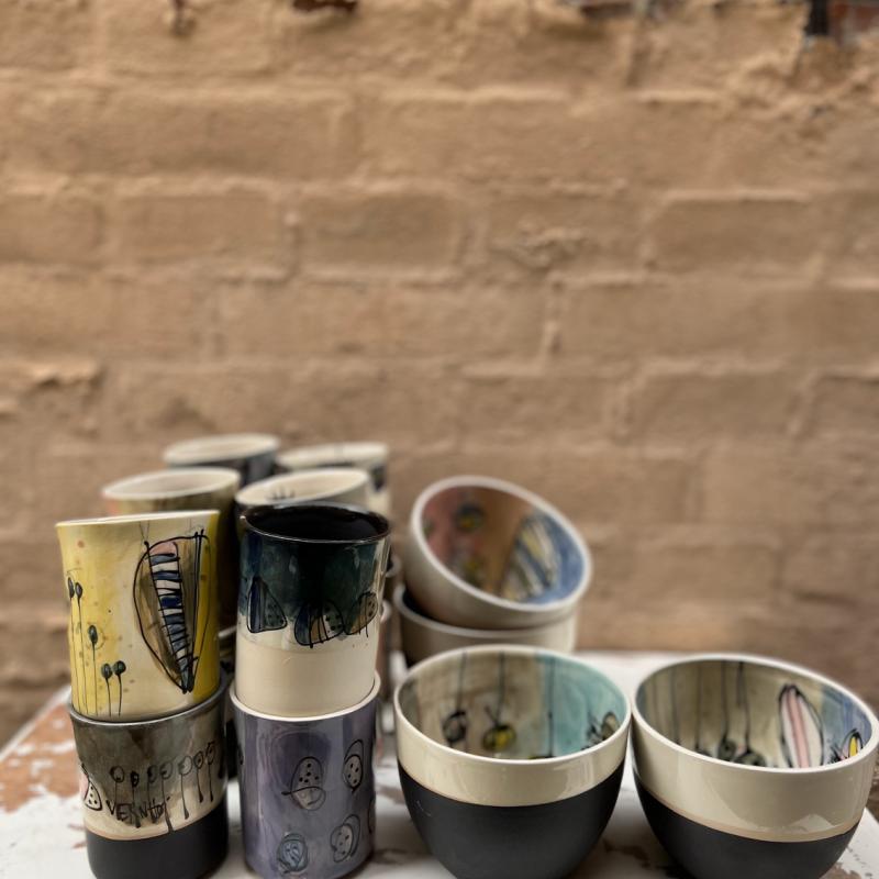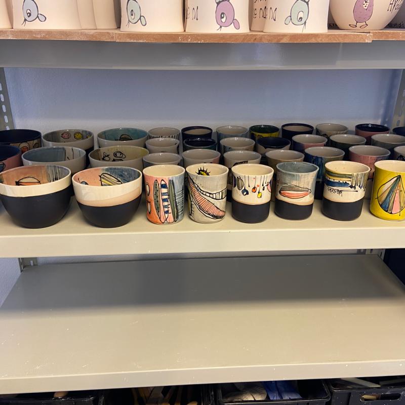 Også er der"artserien" som er sammensat af Dorthes sans for billedkunst - hendes former og cirkler som hun bruger i hendes malerier er overført til keramikken.
