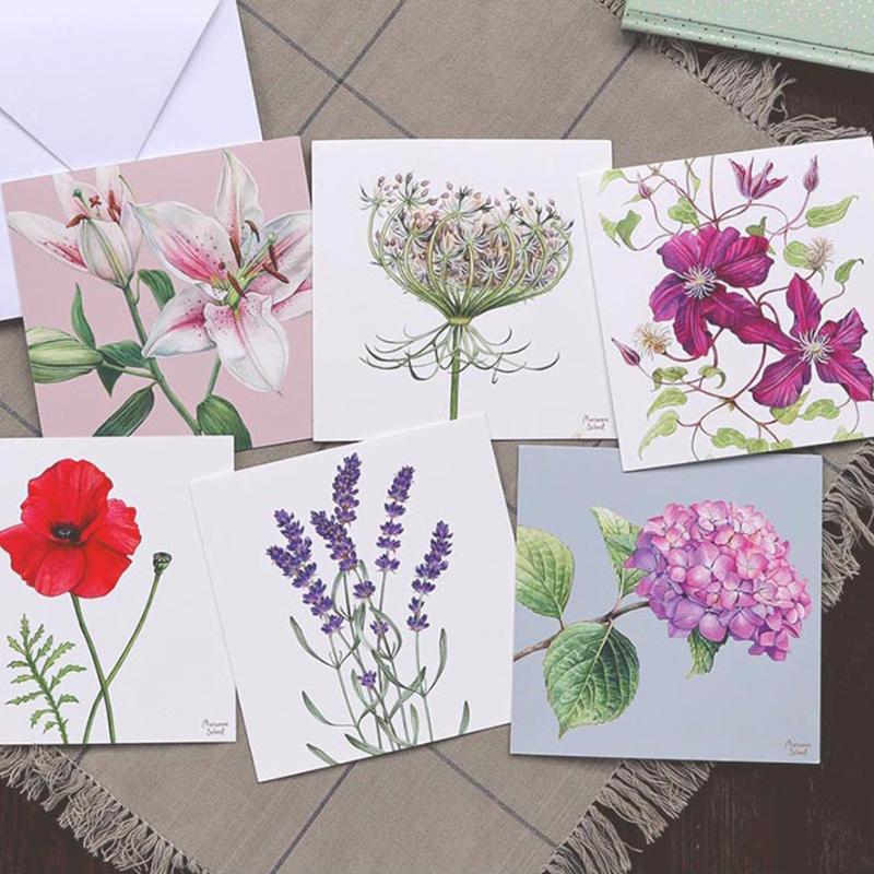 arrow_backTil oversigtenDu kan altid sige det med blomster! Og det har inspireret mig til at male og designe disse lykønskningskort med blomstermotiver. Motiverne er håndmalet med akvareller og farveblyanter og designet af Marianne Scheel fra hendes studie i Skibby. De er alle trykt på 260 gsm mat papir. Indersiden er blank, så du kan skrive din helt egen personlige besked i dem. Mål 14,50x14,50 cm, hvide firkantede kuverter medfølger.