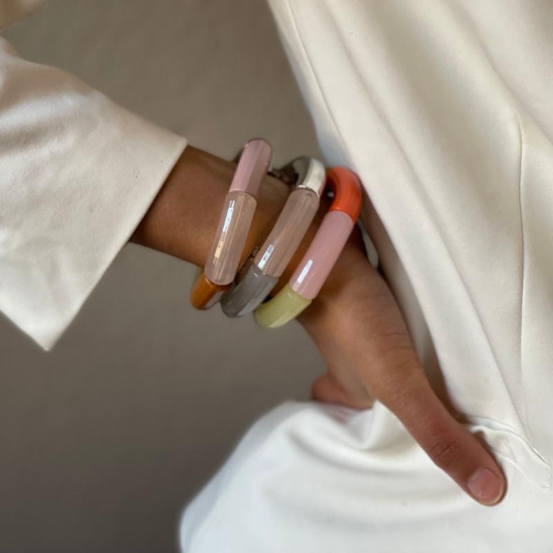 arrow_backTil oversigtenResin armbånd fra La Nom de La Rose - håndlavet i Danmark. Vi har lavest disse armbånd i flere år og tilpasser dem farvemæssigt til årstidernes forskellige kollektioner.