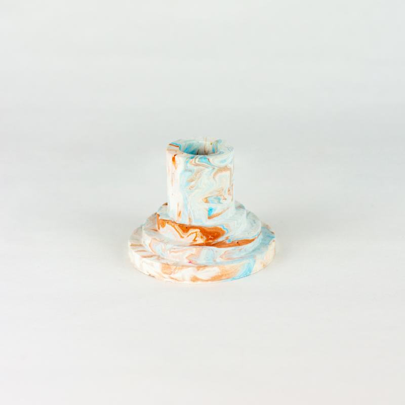 arrow_backTil oversigtenThree tier single hole candle holder perfect for shelf, dinner table or side table. These are all different styles that you can use to make a product. Marble - Sarah Jahangir studio specializes in marble patterns. They can be single-toned with a base color or an explosion of many colors. Terrazzo - is a pattern comparable to the original terrazzo floors that consist of small, irregular shapes ingrained into the material. It's a more intricate and time-consuming technique; consequently, we only make it available in products that have a flat surface. Splatter - The final product resembles scattered random drops, like flicking paint with a brush. Solid - this style contains single-colored products or products containing multiple single-colored sections (e.g., color block).
