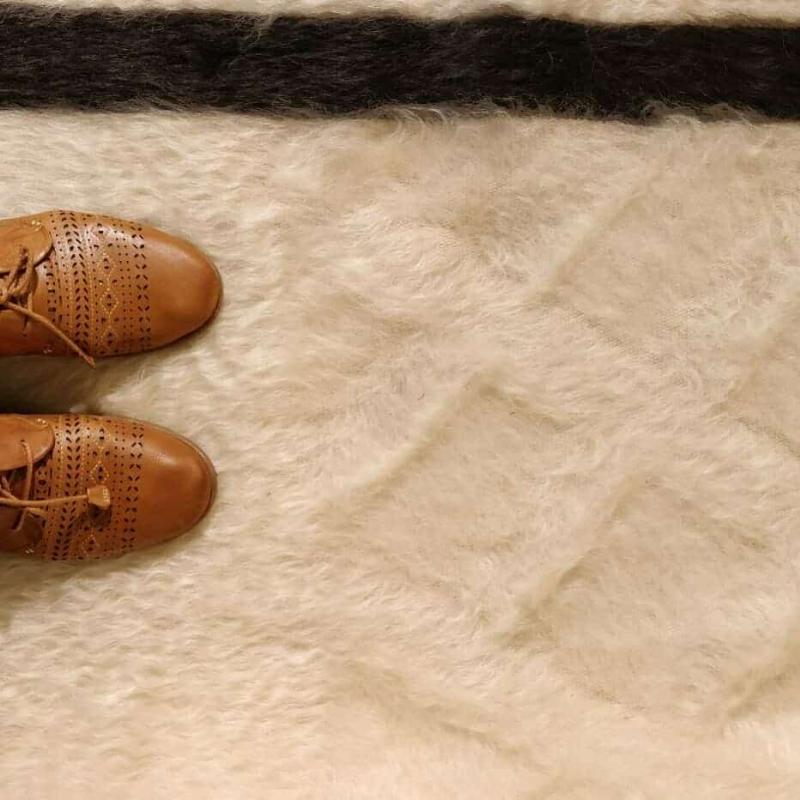Letvægts Mohair Kelim Tæpper er fremstillet af 100% Mohair fra naturligt farvede Angora-geder i fem naturlige farver: hvid, grå, camel, brun og sort. Vores avancerede vævningsteknik efterligner dyreskindets struktur.