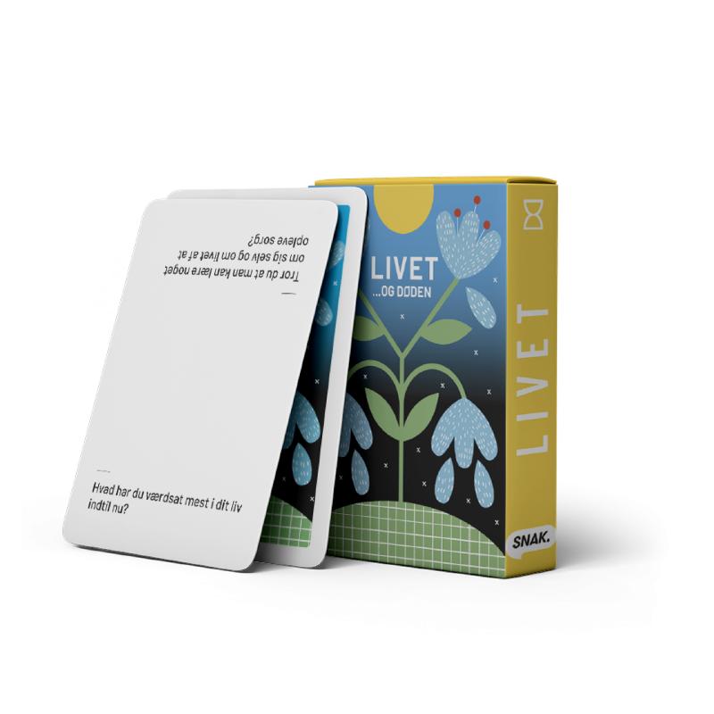 LIVET OG DØDEN er et sæt samtalekort som berør glæden og smerten ved livet. Spørgsmålene imødekommer de svære samtaler der er gode at tage for alle, særligt når døden kommer helt tæt på. Stil spørgsmål som: Hvad vil du gerne huskes for? Har døden været tæt på i dit liv? Hvilke relationer i dit liv har gjort at du er vokset som menneske?