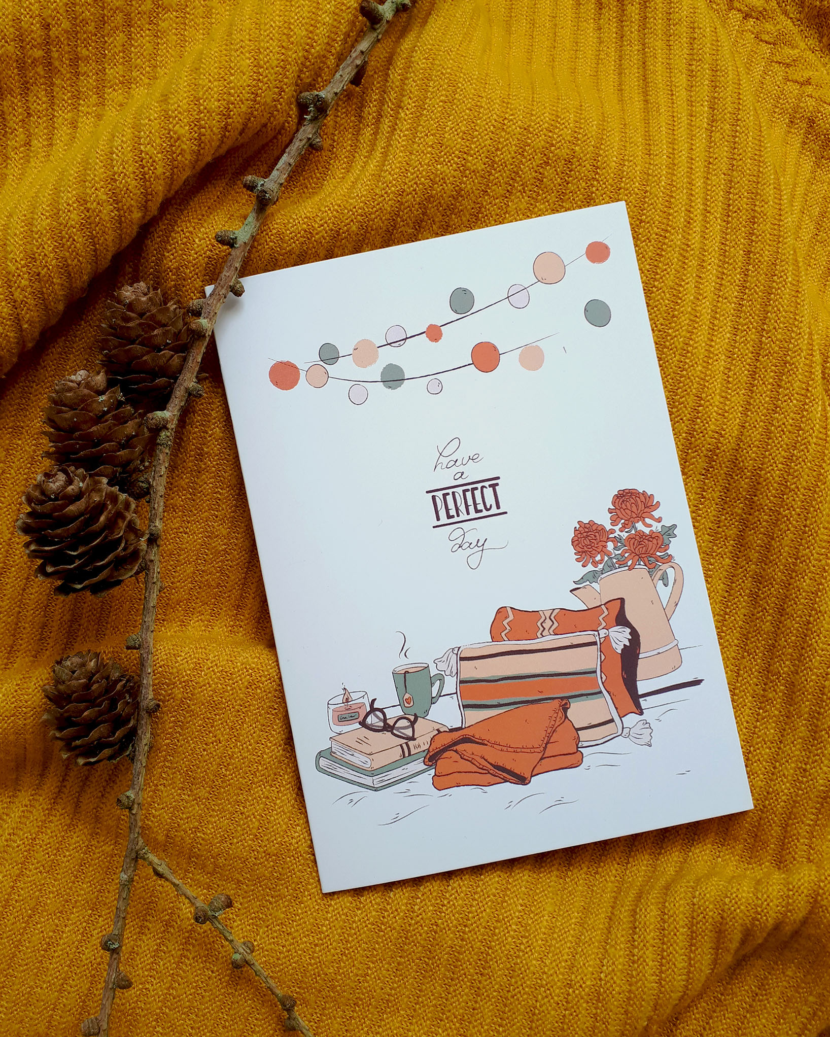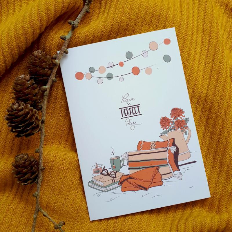 arrow_backTil oversigtenLykønskningskort med fokus på hygge og det simple liv. Trykt på genbrugspapir.