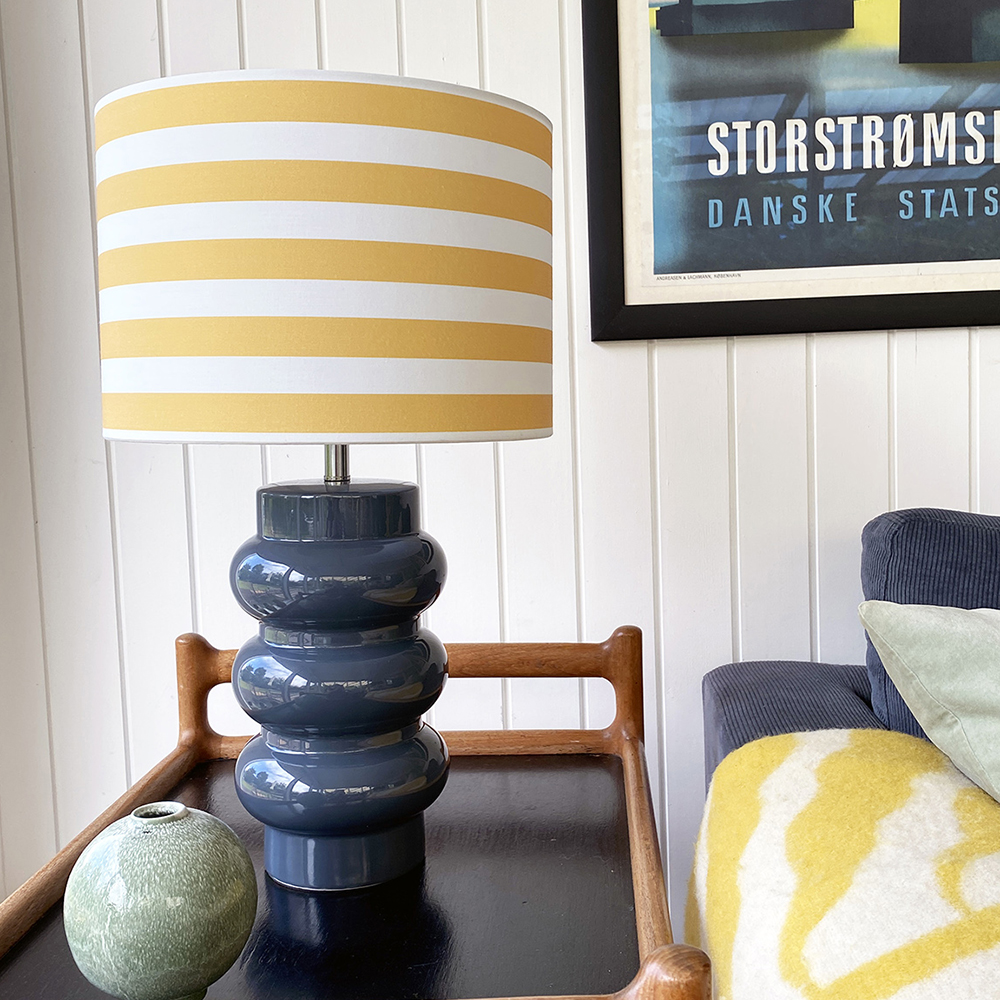 Lyon bordlampe i keramik med stribet skærm er en stilfuld og alsidig belysningsløsning, der kombinerer klassisk charme med moderne design. Denne lampe er ideel til at tilføre et rum et sofistikeret og elegant touch, samtidig med at den skaber en varm og indbydende atmosfære.
