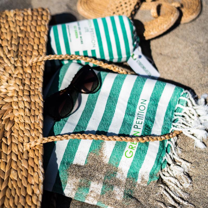 Mare serien er lavet i 50% øko bomuld, 25% recycled bomuld - og 25% recycled plastikflasker. Det findes i følgende farver: Tangerine, Lime, Capri, Sand Beige og Ochre. Alle vores håndklæder fremstår i 100% bæredygtigt materiale.