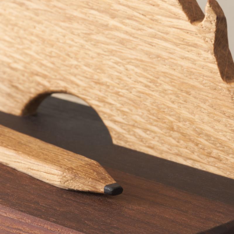 Med sav og blyant som ikoniske symboler hylder Maya Soele® LUMBER præcisionen, kreativiteten og kærligheden til naturmaterialer, der kendetegner træfagene. Figuren er udført i smukt FSC® 100%-certificeret ege- og asketræ og designet i et ikonisk, skandinavisk formsprog, der passer harmonisk ind i enhver boligindretning.