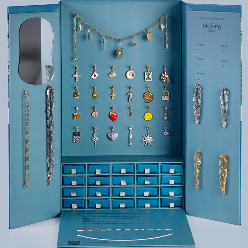 Vi har forsøgt via et speciallavet display at fremstille vores Studio på Gl Kongevej på Frederiksberg, hvor vi har indsat alle vores bestsellere af produkter, nemlig charms og kæder.