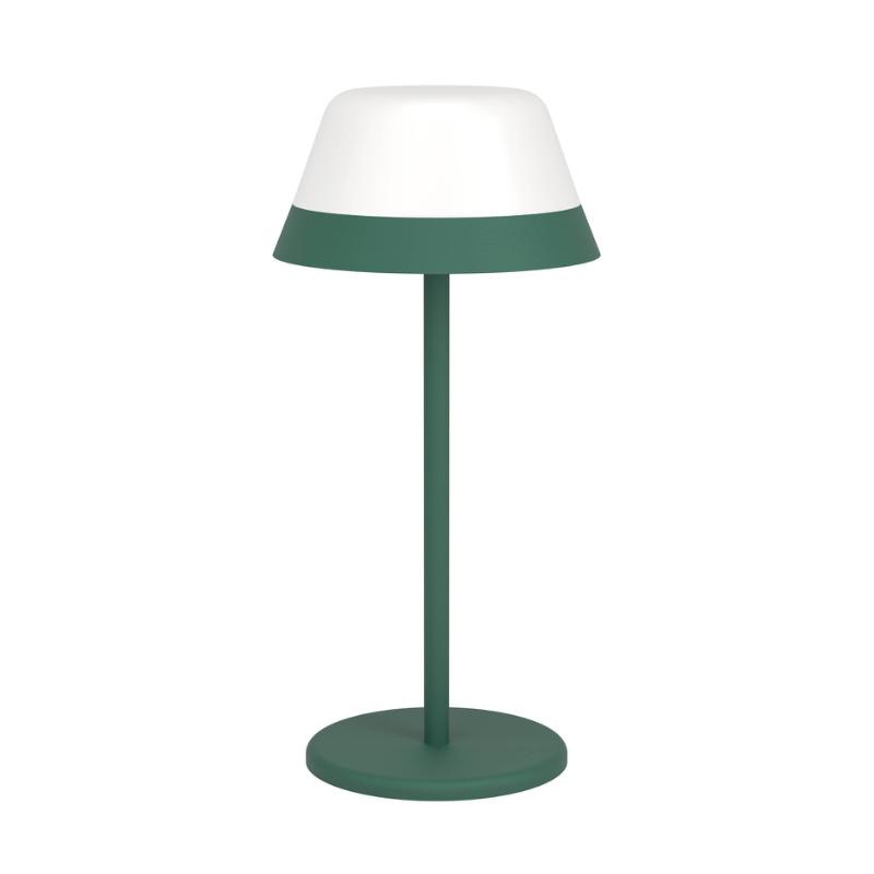 arrow_backTil oversigtenArt. 900981, EGLO MEGGIANO udendørs genopladelig batteri bord- og hængelampe i grøn og hvid. Med touchdæmper og USB-C opladerkabel. Højde 32 cm, diameter 15 cm. LED, 1,5 + 0,8 watt, 170 + 150 lumen, RGB + varm hvid. IP54. Leveres inkl. 2 x Li-ion, 2600mAh batterier.
