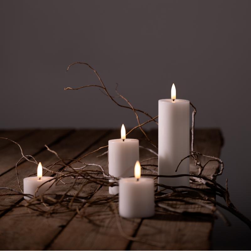 arrow_backTil oversigtenTag godt imod vores nye bloklys med deres iøjnefaldende og realistiske “smeltet” effekt - som om dit lys allerede har været tændt et stykke tid - og oplev den helt særlige stemning, når flammen reflekteres i den “våde” stearin og den hyggelige atmosfære breder sig i dit hjem. Du finder vores nye Melted Pillar Candles i et alsidigt udvalg af størrelser og smukke neutrale nuancer.