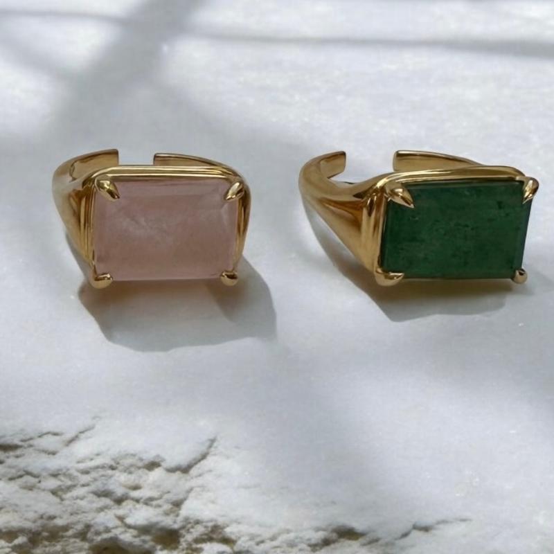 Ringen kommer i 4 Krystallerne: Lemon Kvarts, Rosa Kvarts, Rutil Kvarts og Grøn Turmalin.