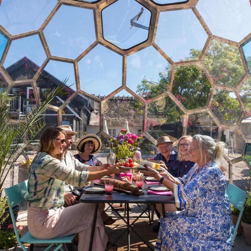 Grøn og blå har en afslappende og beroligende effekt på os mennesker og er netop et perfekt match til naturens egne nuancer. Her får du et fredfyldt åndehul fra den travle hverdag og kan fordybe dig i naturens skønhed og kuplens kunstneriske udtryk.