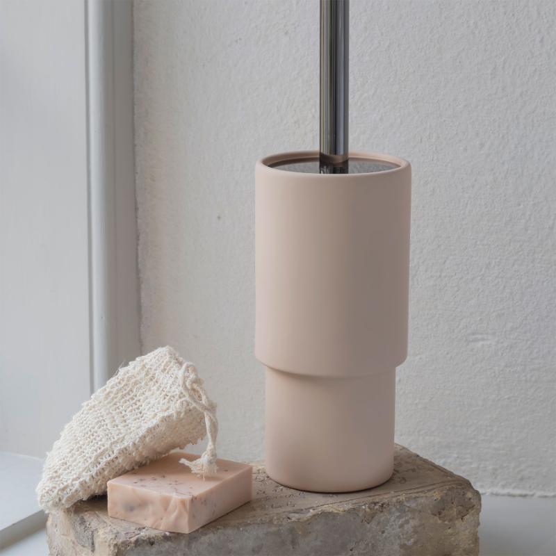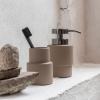 I serien finder du en sæbedispenser, en tumbler og en toiletbørsteholder i farverne nougat og linned.