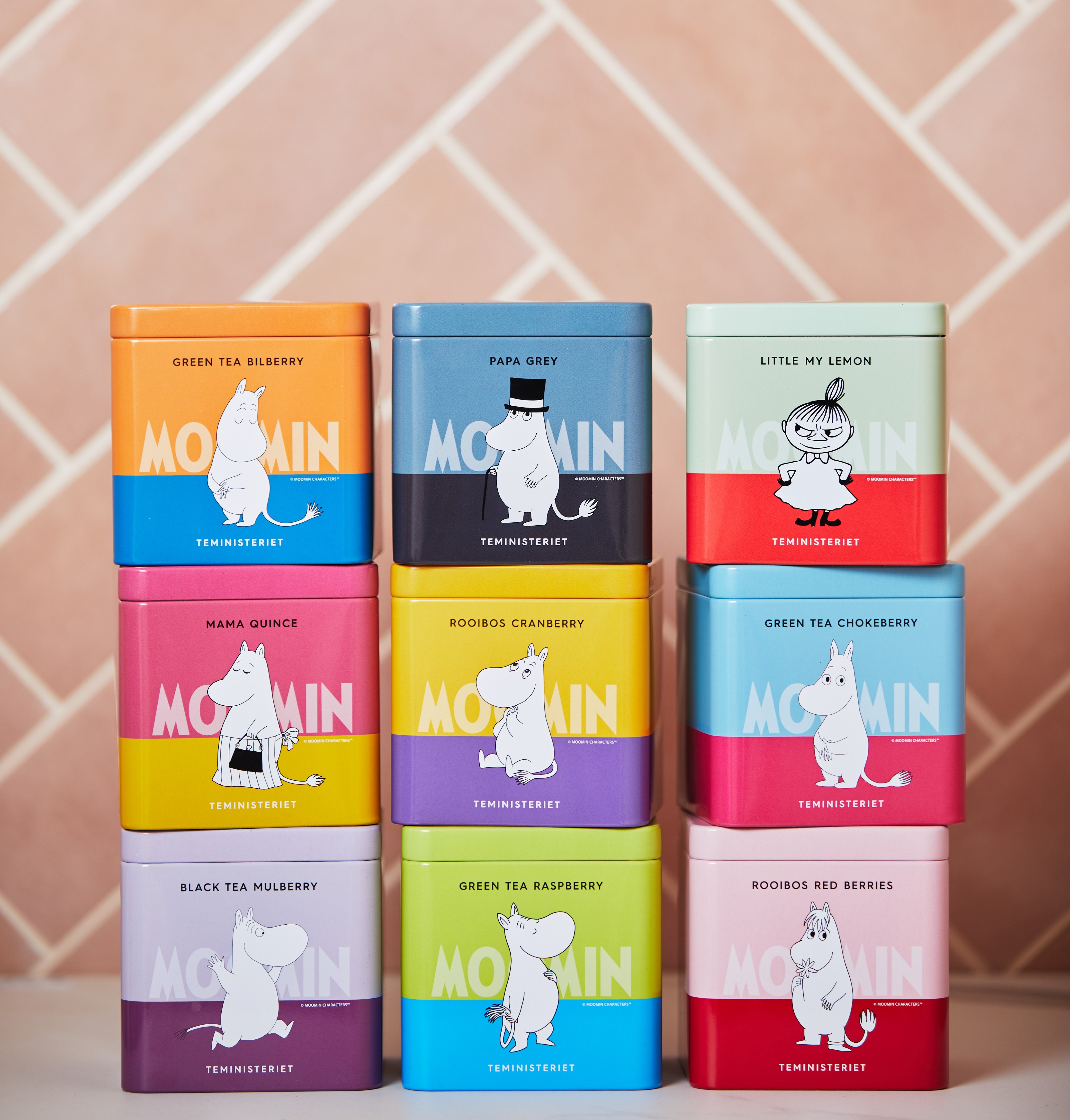 Tin dåserne er fint dekoreret med de forskellige moomin karakterer i mange forskellige farver.
