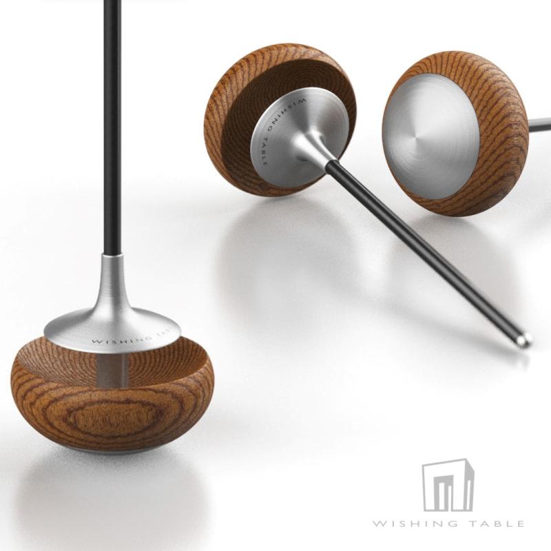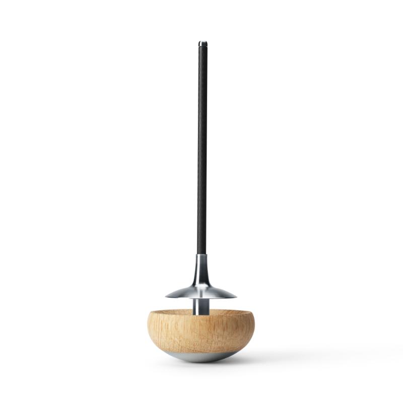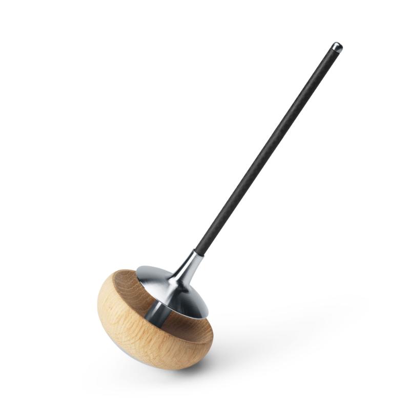 Den er udformet som en tumling, der kan pendulere, hvis det lange skaft slippes nede ved bordoverfladen.