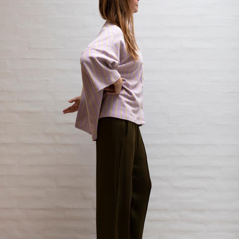 Skjorten fås i vores signatur-farver og klassiske striber og kommer i den blødeste strikkede frottébomuld, som er 100% økologisk og OEKO-TEX®-certificeret. Det absorberende bomuldsfrotté leder fugt hurtigt væk om sommeren, men stoffet vil ligeledes holde dig varm og stilfuld i køligere vejr.