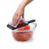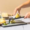 arrow_backTil oversigtenNocutu er et mandolinjern med en unik og fleksibel fingerbeskyttelse, der kører på skinner for at skære sikkert helt ned til den sidste skive. Det knivskarpe japanske blad i rustfrit stål skærer i tykkelser på 1 mm, 2 mm og 3 mm og kan låses for sikker opbevaring. Den integrerede, skridsikre fod kan foldes ud for at hæve Nocutu sikkert, så der kan stables flere madskiver nedenunder uden at de kommer i klemme. Den fleksible fingerbeskyttelse kan klikkes på og fungerer også som knivdæksel til sikker og nem opbevaring.