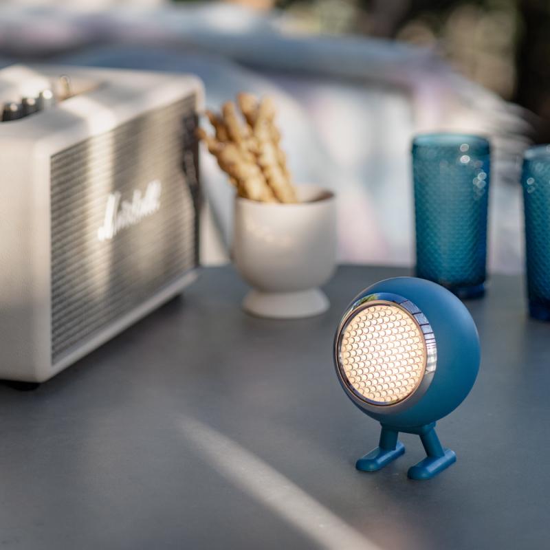 Spherical and on two feet, Norbitt becomes a character. Rotatable by 360°, it carries light and fun into every corner of our private universe. Handy and cordless, the little light figure can be used universally both indoors and outdoors. Its battery-powered glow can be switched between three levels, from soft starlight to interstellar luminosity. In the event of a power failure, it is fully charged and unimpressed as an emergency light for us earthlings.