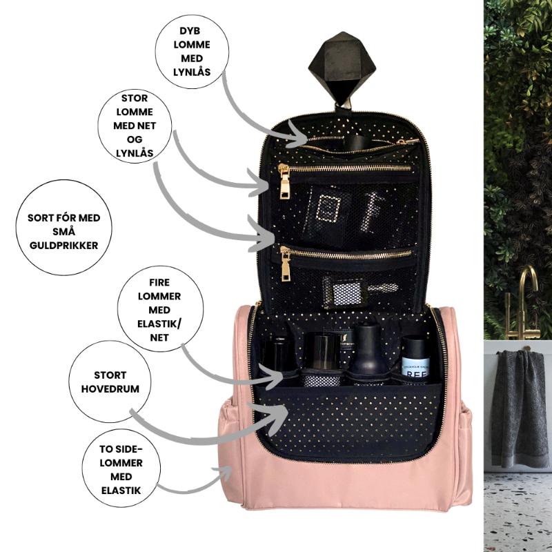 arrow_backTil oversigtenVores nye Nova toilettaske med ophæng er den perfekte rejsepartner når man skal have plads til mange produkter på lidt plads. Fx når du er på hotel, på camping, i svømmehallen eller til hverdag hvis badeværelset ikke er så stort. I alle tilfælde er det super praktisk at kunne opbevare beauty produkter og makeup så kompakt som muligt.