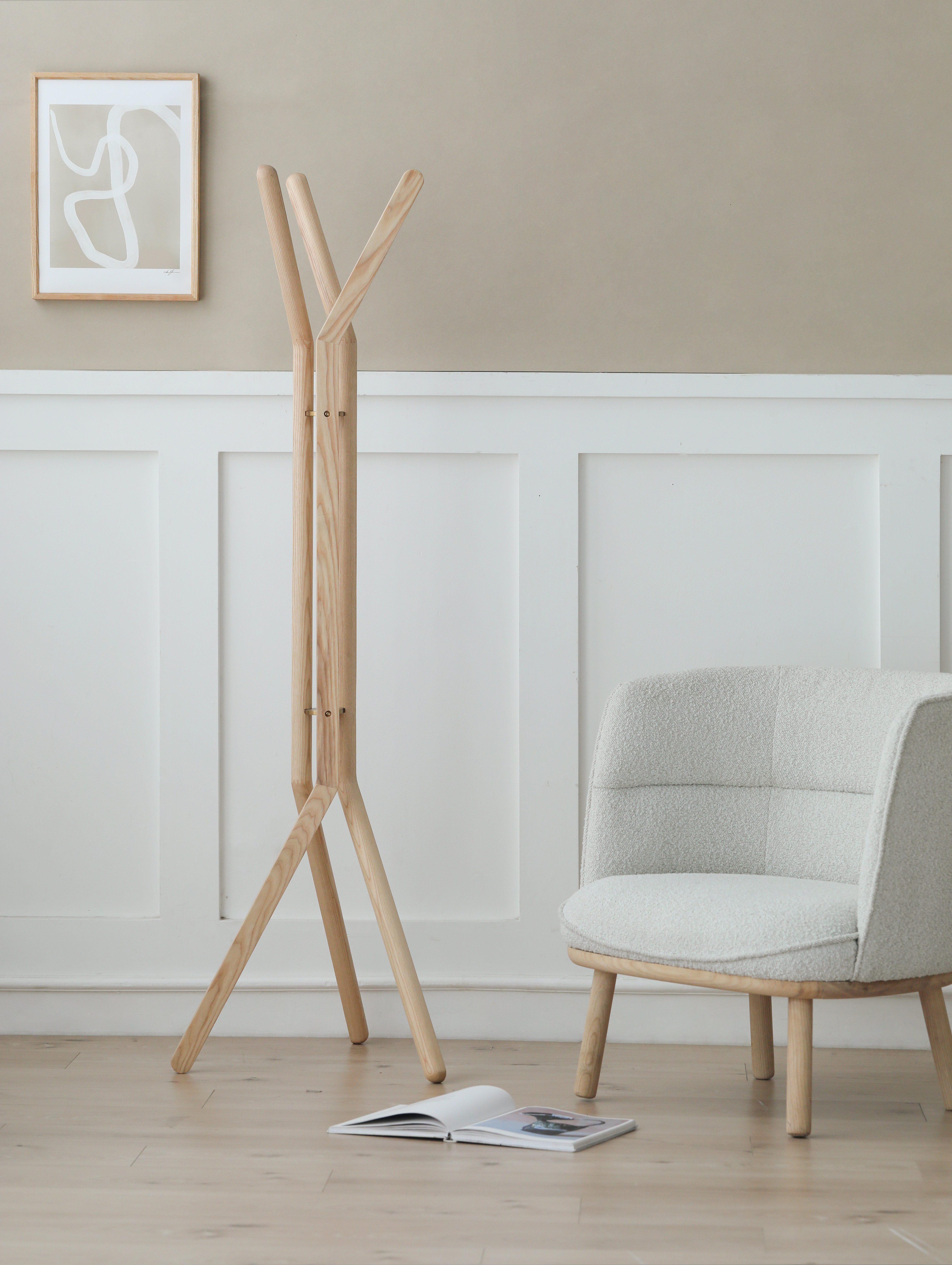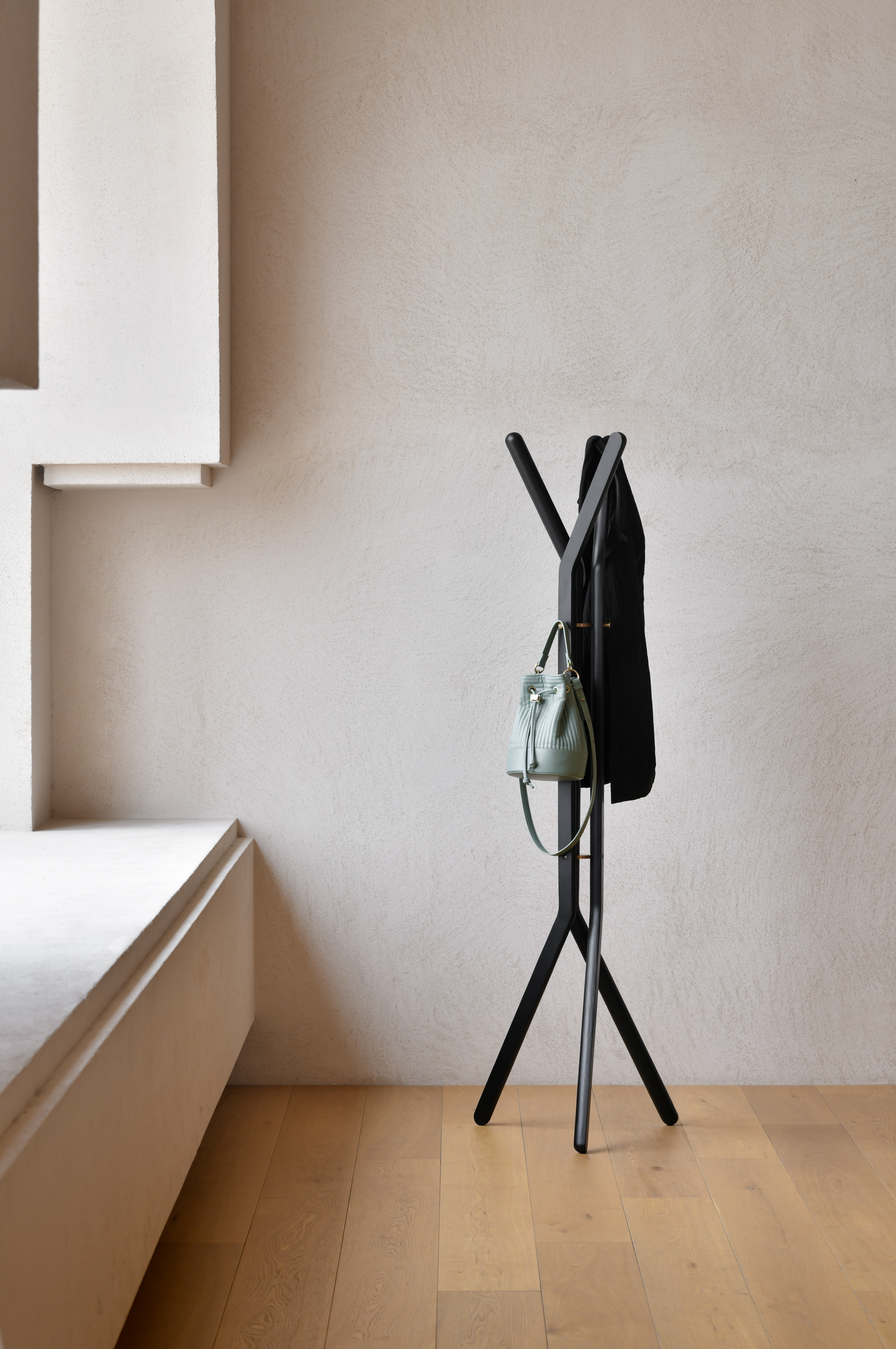 November er lavet af massiv ask med messing coated beslag.
