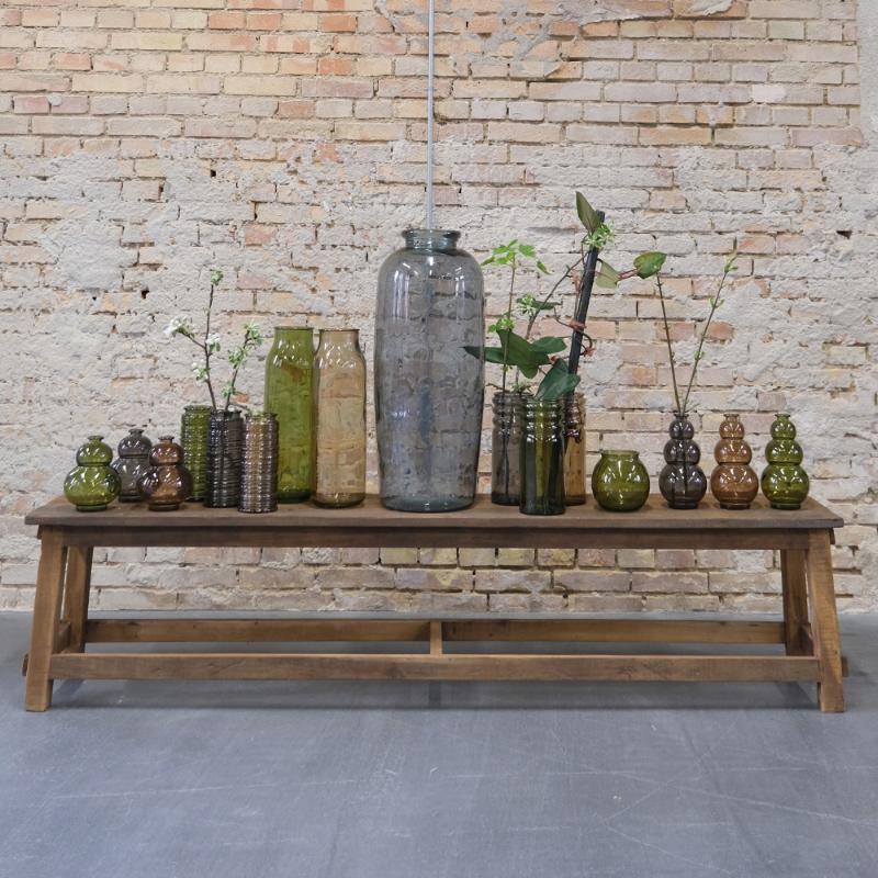 Her er noget for enhver smag: buttede former, fine riller og slanke silhuetter. Alle i genanvendt glas og i farver, der passer perfekt ind i både den mørke og den lyse indretning. Brug dem med enkle grene, friske blomster eller som de er.