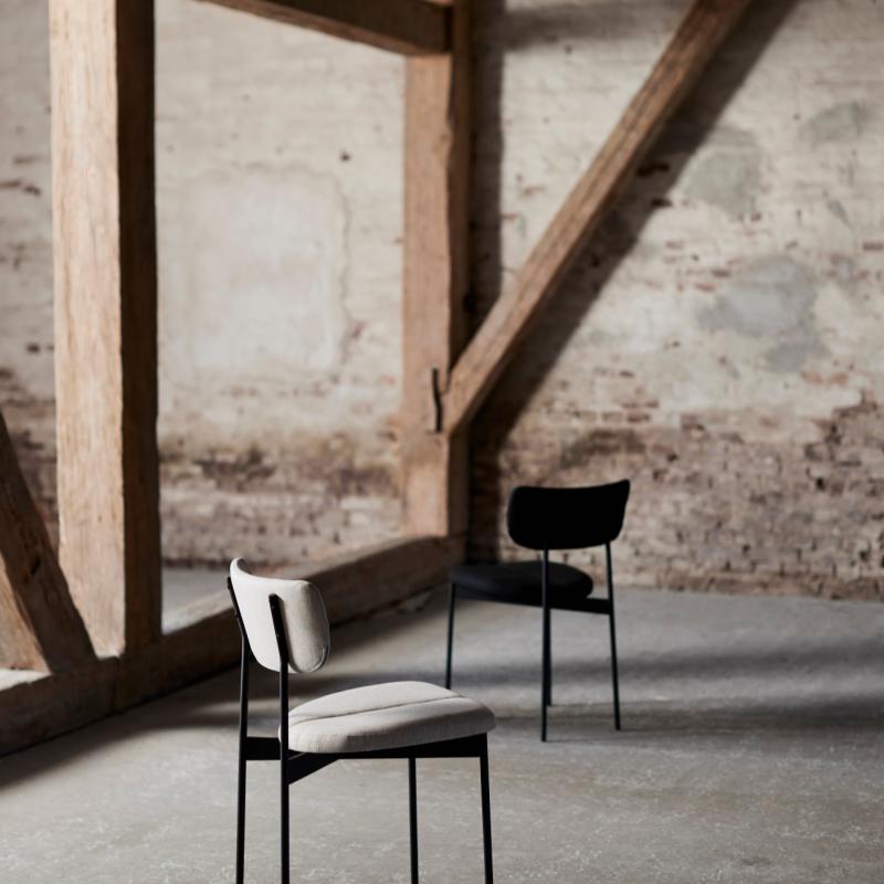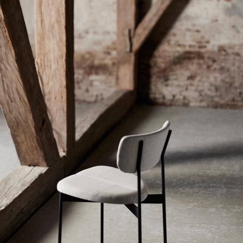 arrow_backTil oversigtenOni spisebordsstolen kombinerer moderne, nutidig æstetisk med enkel funktionalitet i en komfortabel og minimalistisk spisebordsstol. De fire elegante stålben fungerer som en let og raffineret base, der gør stolen til en stilfuld tilføjelse i enhver indretning. De grafiske linjer og den diskrete modernisme, gør stolen ideel ved middagsbordet. Med sin slanke og enkle konstruktion passer stolen ind overalt i hjemmet - uanset om det er i en lille køkkenkrog eller i stor spisestue. Stellet er fremstillet af sort pulverlakeret metal, mens det organiske ryglæn og brede sæde, lavet af polyuretanskum, sikrer god støtte og høj komfort. Det lyse sand sæde og ryglæn, der matcher det mørke stel, er lavet af 100% polyester, der gør stolen slidstærk og holdbar. Stolen er designet med elegante, asymmetriske syninger, der giver stolen, et grafisk og interessant udtryk.