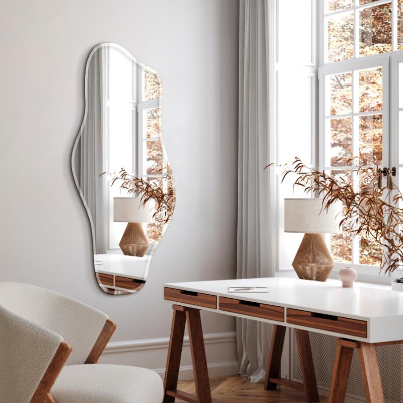 arrow_backTil oversigtenDette er vores mest populære spejl, Wave, som forener skandinavisk design med moderne elegance. Den organiske og asymmetrisk bølgende form giver et blødt og naturligt udtryk, mens den eksklusive facetkant tilføjer en raffineret finesse. Det er et sandt mesterværk af form og funktion, designet til at skabe et fokuspunkt i ethvert rum. Dette spejl passer smukt ind i enhver moderne indretning, hvor det både kan fungere som et praktisk og dekorativt element.