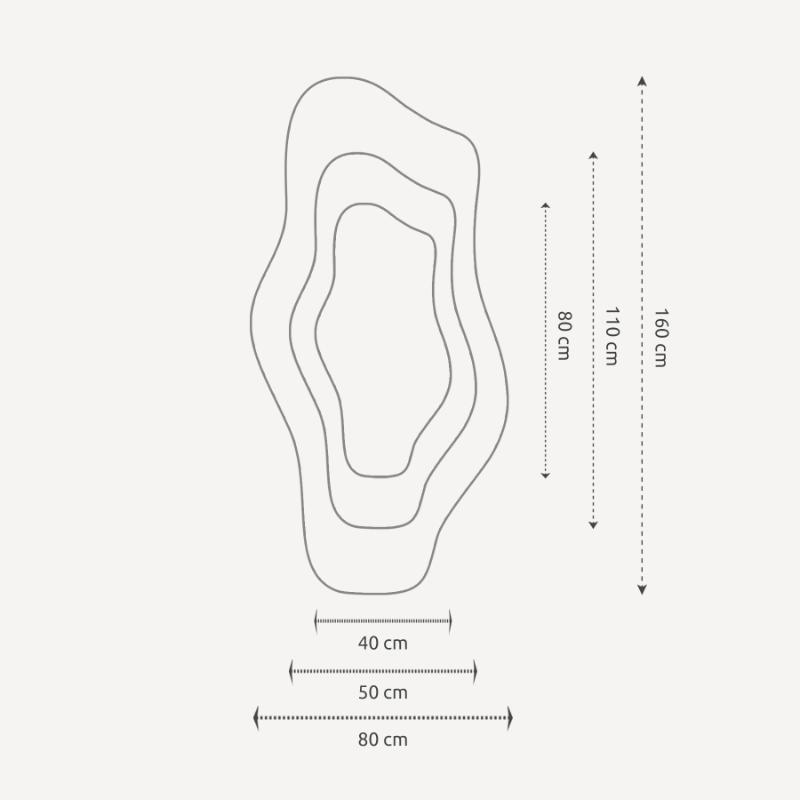 Oplev det populære spejl i tre størrelser: 40x80, 55x110 og 80x160 cm.