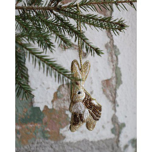 arrow_backTil oversigtenGive your Christmas tree a sparkling and personal touch with this hand-embroidered Christmas ornament in the shape of an hare. Every detail of this unique Christmas decoration is carefully hand-stitched with glass beads on both sides, giving it a beautiful and elegant shine. This exclusive ornament is more than just a decoration - it’s a piece of art that captures the spirit of Christmas with its warmth and design. Perfect for creating a cozy and glittering holiday atmosphere, this ornament will become a memorable feature in your tree each year. A little treasure that adds a touch of gold to your Christmas tree.
