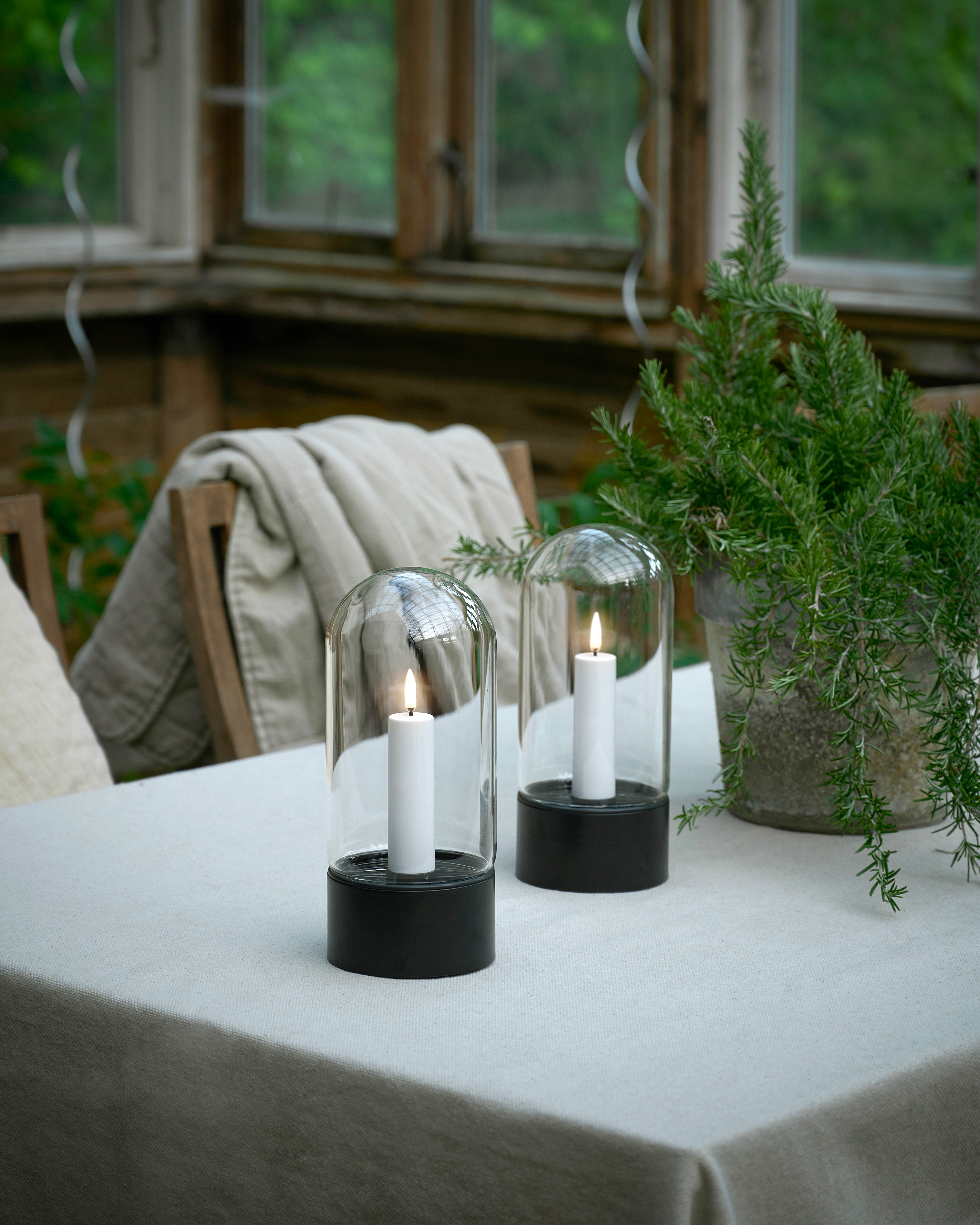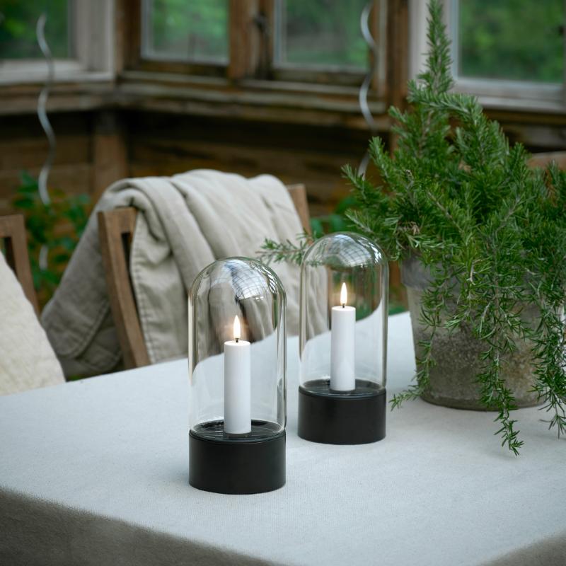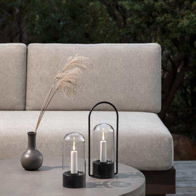 A tempered glass dome cover gives this outdoor lantern a modern outdoor lantern a modern aesthetic. Dimmable lighting, remote control function, hours of warm candlelight and a realistic, state-of-the-art 3D LED flame that flickers gently, provide you with safe, effective and user-friendly lighting. Three stylish and versatile accessories are available separately, to complement and enhance your Uyuni outdoor lantern.