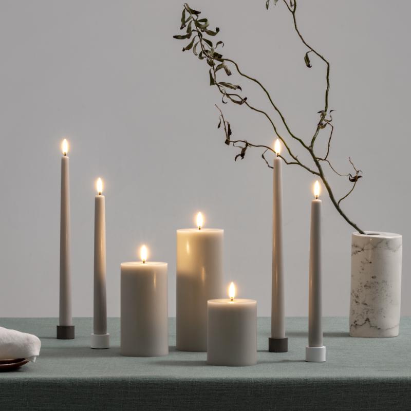 arrow_backTil oversigtenUyuni Candles blend timeless design with modern innovation. Their traditional aesthetic and luxurious feel are complemented by the revolutionary High Quality Signature Flicker™, delivering a lifelike glow. What sets Uyuni Candles apart is their practicality, featuring remote control functionality that lets you switch them on or off, adjust brightness, or set the perfect mood from anywhere in the room. With multiple timer options from 4 to 10 hours, you can tailor the candlelight to any occasion. Now available in the elegant Oyster Grey, these candles offer effortless control for a serene ambience with just a touch.