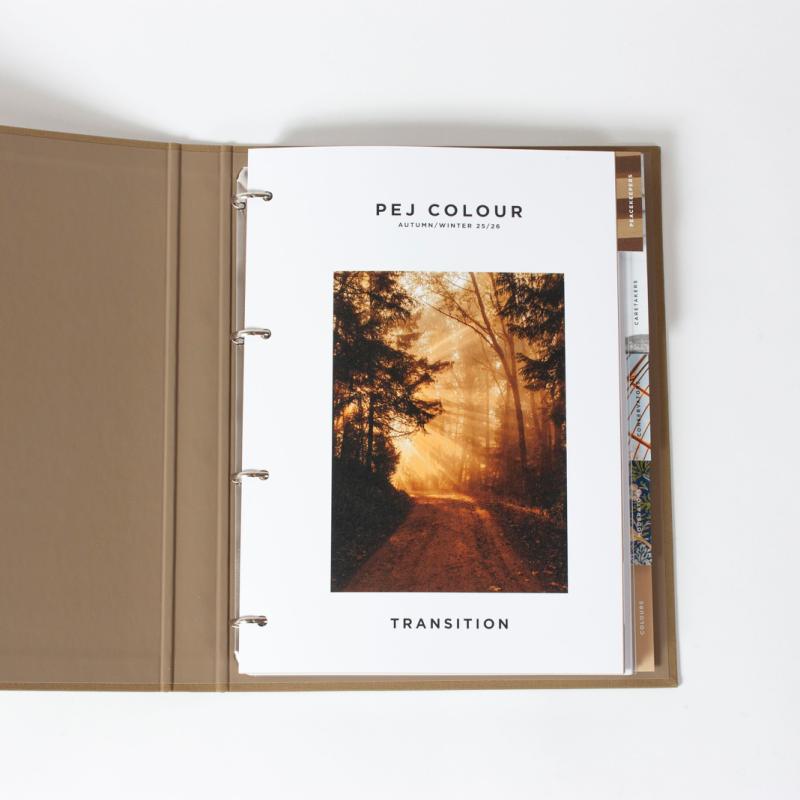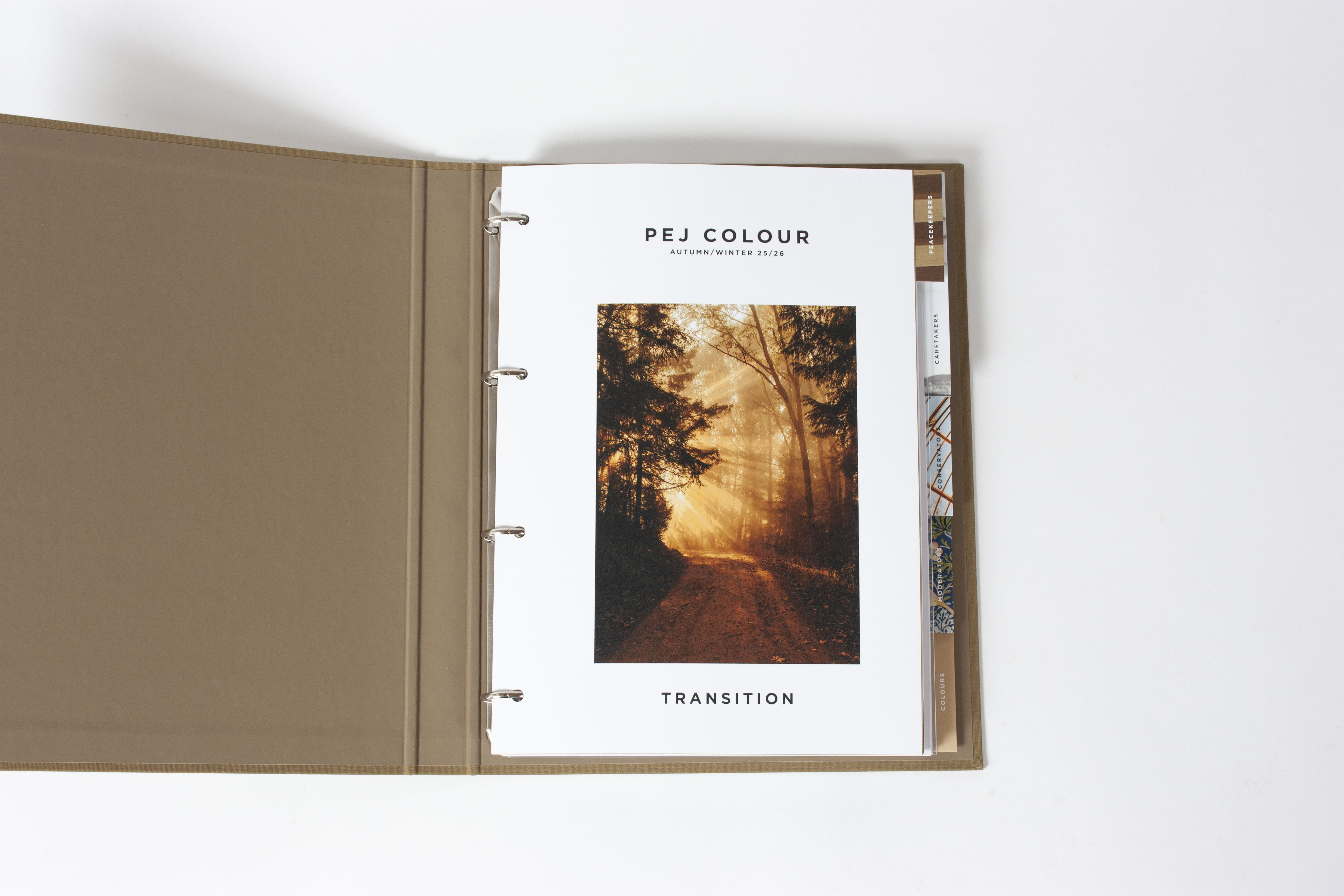 pej colour er en kommerciel trendbog, der giver adgang til sæsonens vigtigste farveinspiration. Den er skabt til professionelle og kreative aktører, der søger præcis og brugbar vejledning i farvevalg og farvekombinationer.