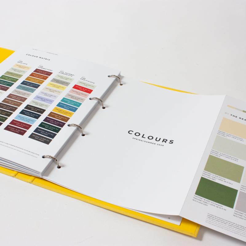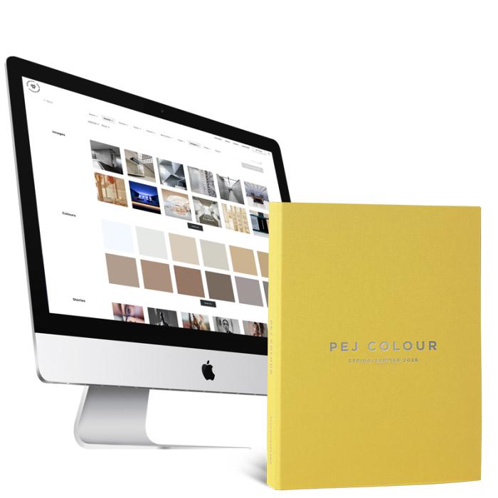 pej colour er en kommerciel trendbog, der giver adgang til sæsonens vigtigste farveinspiration. Den er skabt til professionelle og kreative aktører, der søger præcis og brugbar vejledning i farvevalg og farvekombinationer.