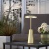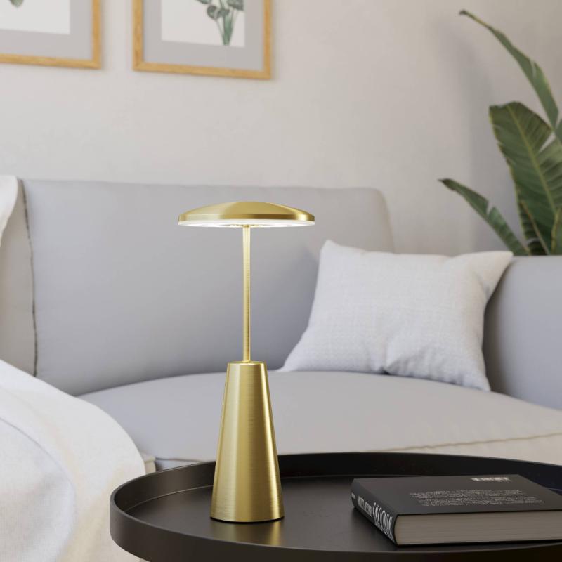 arrow_backTil oversigtenArt. 900923, EGLO PICCOLA udendørs genopladelig batteri bordlampe i børstet messing. Med touchdæmper og USB-C opladerkabel. Højde 28 cm, diameter 13 cm. LED, 2,8 watt, 270 lumen, 2400, 3000 og 4000 kelvin, tunable white. IP54. Leveres inkl. 2 x Li-ion, 2600mAh batteri.