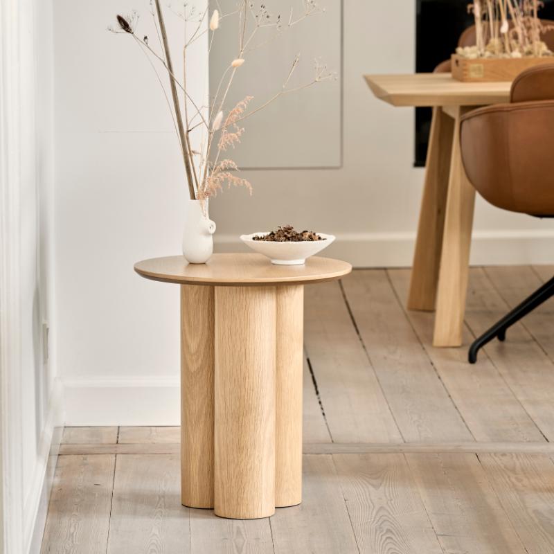 arrow_backTil oversigtenPillar bordene i FSC-certificeret egetræ med tre søjleben og rund bordplade i egetræsfinér tilbyder et moderne og organisk look. Deres enkle, sofistikerede design gør dem til et stilfuldt valg, f.eks. som sidebord til sofaen eller som sengebord, og de fås i både sort lakeret og natur for at matche enhver indretningsstil.