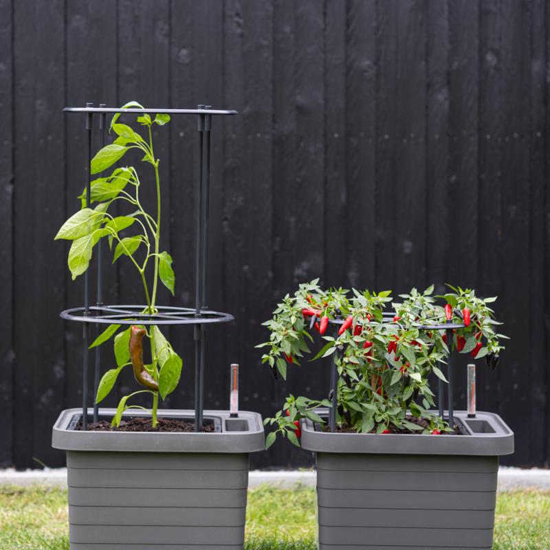 arrow_backTil oversigtenPindstrup Selvvandingskasser fås i tre størrelser. Kassernes spande fyldes med den ønskede muld. Mulden trækker vand fra kassens beholder op til planterne. Kassen har hjul, hvilket gør den nem at flytte. Desuden kan der tilkøbes låg, espalier og espaliercover til kasserne, som gør det til en leg at dyrke.