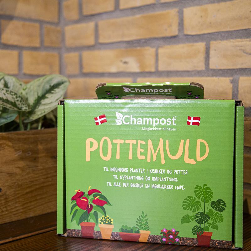Pottemulden er beregnet til indendørs planter og består af komposteret pileflis, kalvemøg, Vækst-ler, Champost Jordforbedring og kalk. Den har en fin og luftig struktur og er helt uden spagnum.
