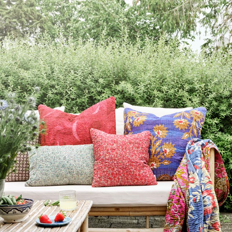 arrow_backTil oversigtenVores sari puder, er det mest solgte produkt i Manelleh og et af de produkter, vi er bedst kendt for. Puderne er lavet af vintage sarier og håndsyet med traditionelle kantha-sting, af dygtige kvinder i Bangladesh.