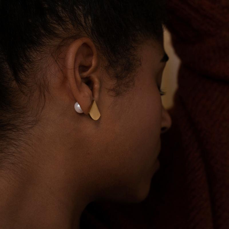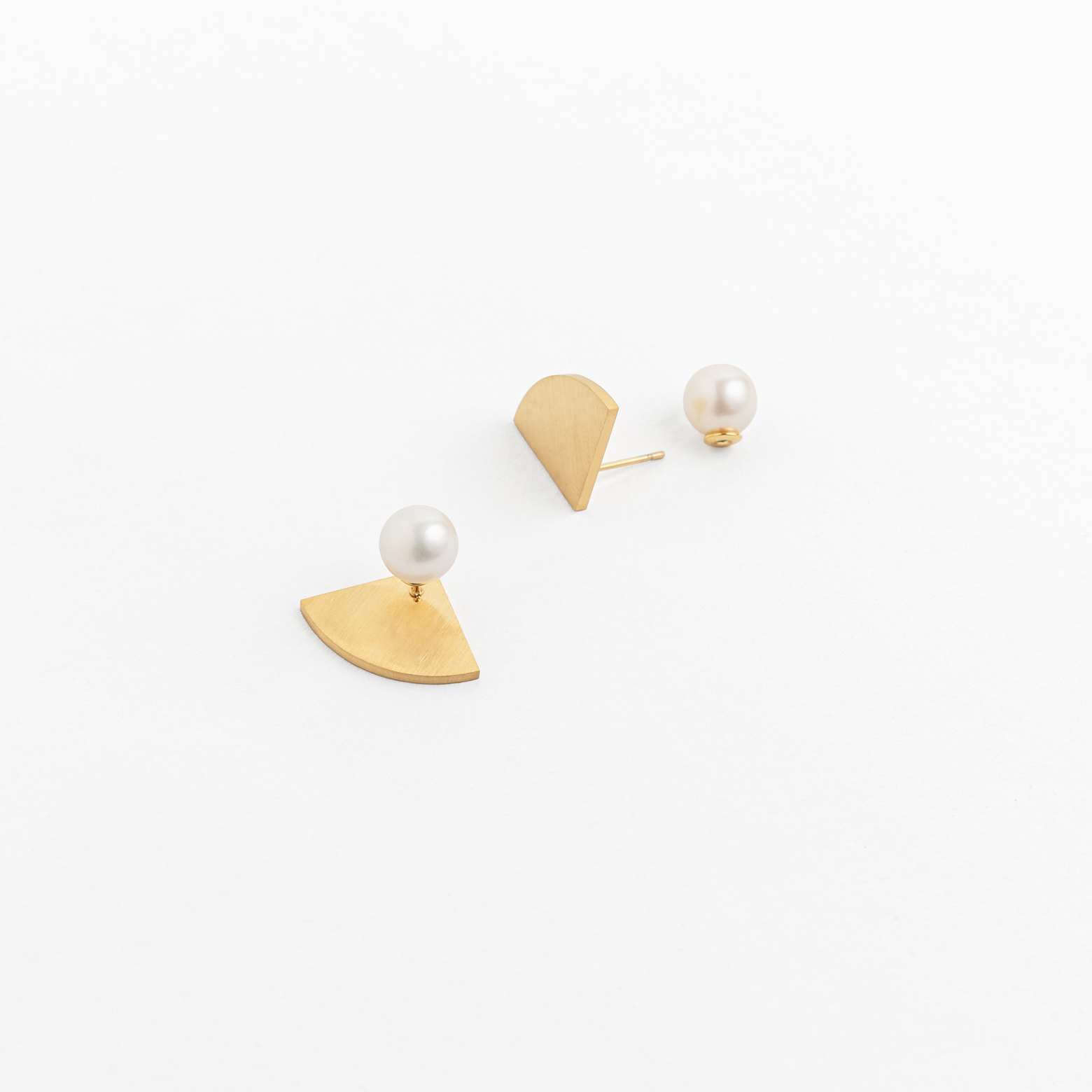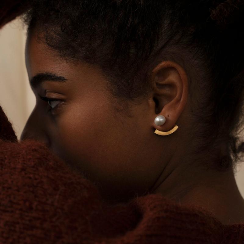 arrow_backTil oversigtenEn af vores bestsellers i 2022: Ørestikkerne Quarter Circle i guld finish med vores rundslebne ferskvandsperlelås.