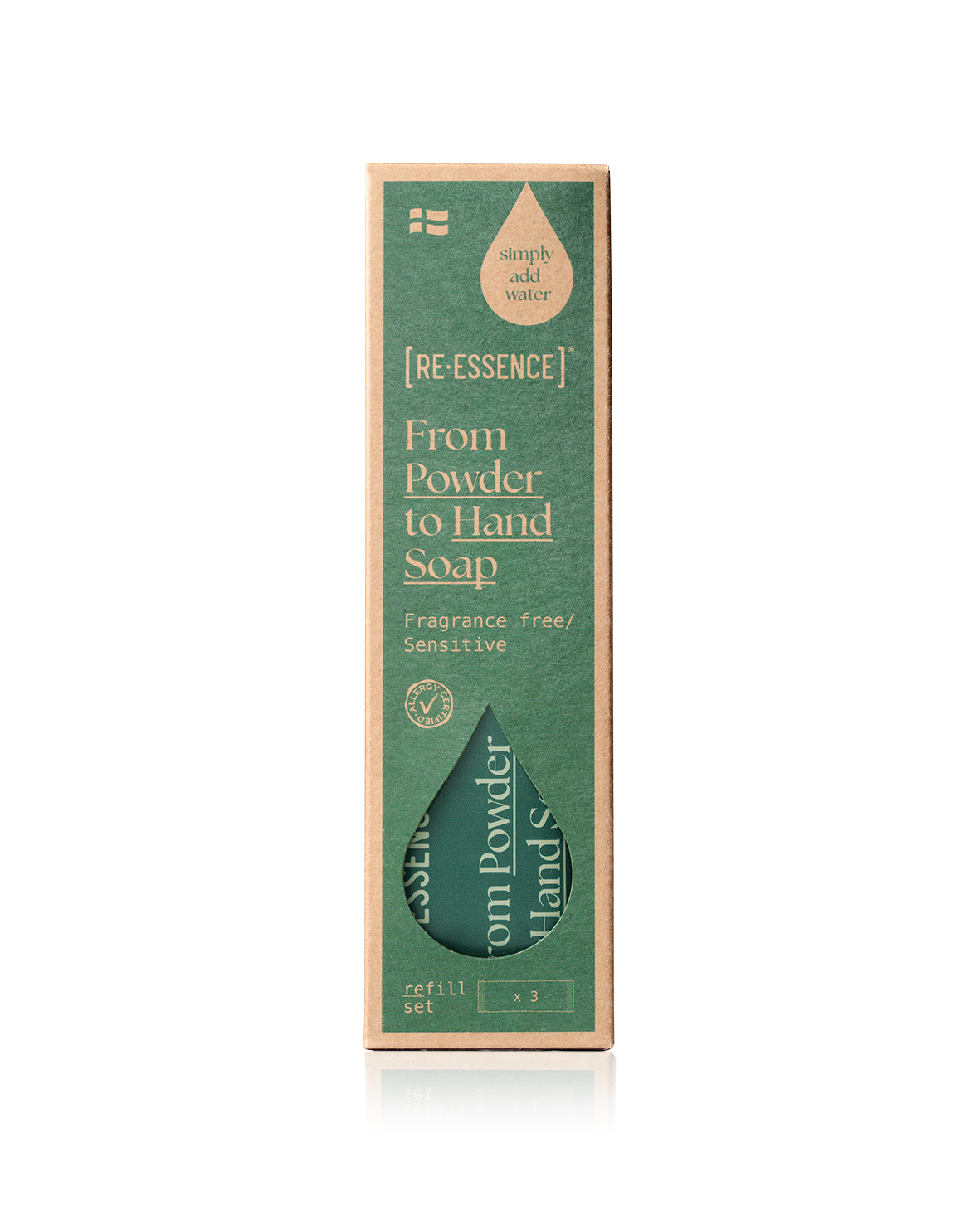 arrow_backTil oversigtenÆske med 3 stk. Parfumefri/Sensitiv refills der giver 3 x 340 ml mild og plejende håndsæbe af 98% naturlig oprindelse.