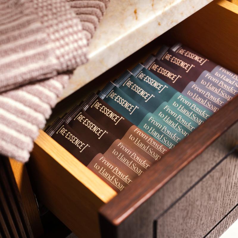 Med kun de bedste håndplukkede ingredienser har vi udviklet et banebrydende koncentrat i pulverform. Når det blandes med vand, forvandler det sig til en luksuriøs og plejende håndsæbe.