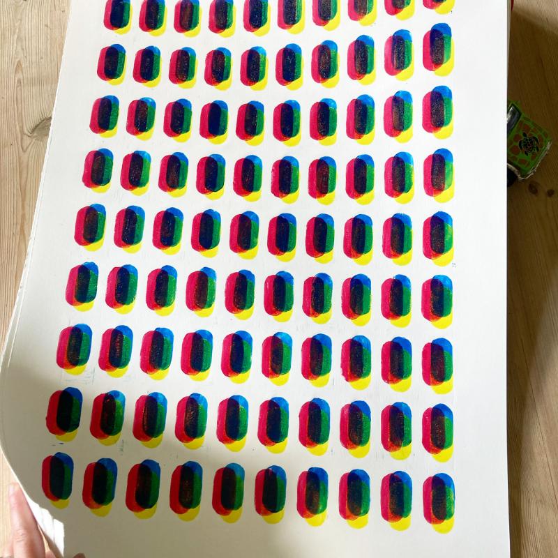 arrow_backTil oversigtenKunstprint af originalt linoleumtryk. Grafisk relieftryk som er printet af 3 omgange, hvor primærfarvernes sammenspil skaber skaber nye farver Her er æstetik, farve og komposition er i højsæde. Kunstprintet fåes i A4, A3 og 50x70.