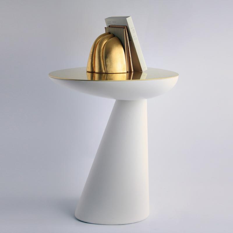 Sidebordet kommet i 6 naturlige farver, smukt afstemt i forhold til hinanden, monteret med fin messingplade, som fuldender udtrykket. Silkebeton er et relativt nyt materiale indenfor dansk møbeldesign, og tilmed også bæredygtigt.
