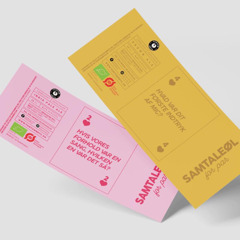 I denne ølgave får du seks forskellige samtalekort, fx: