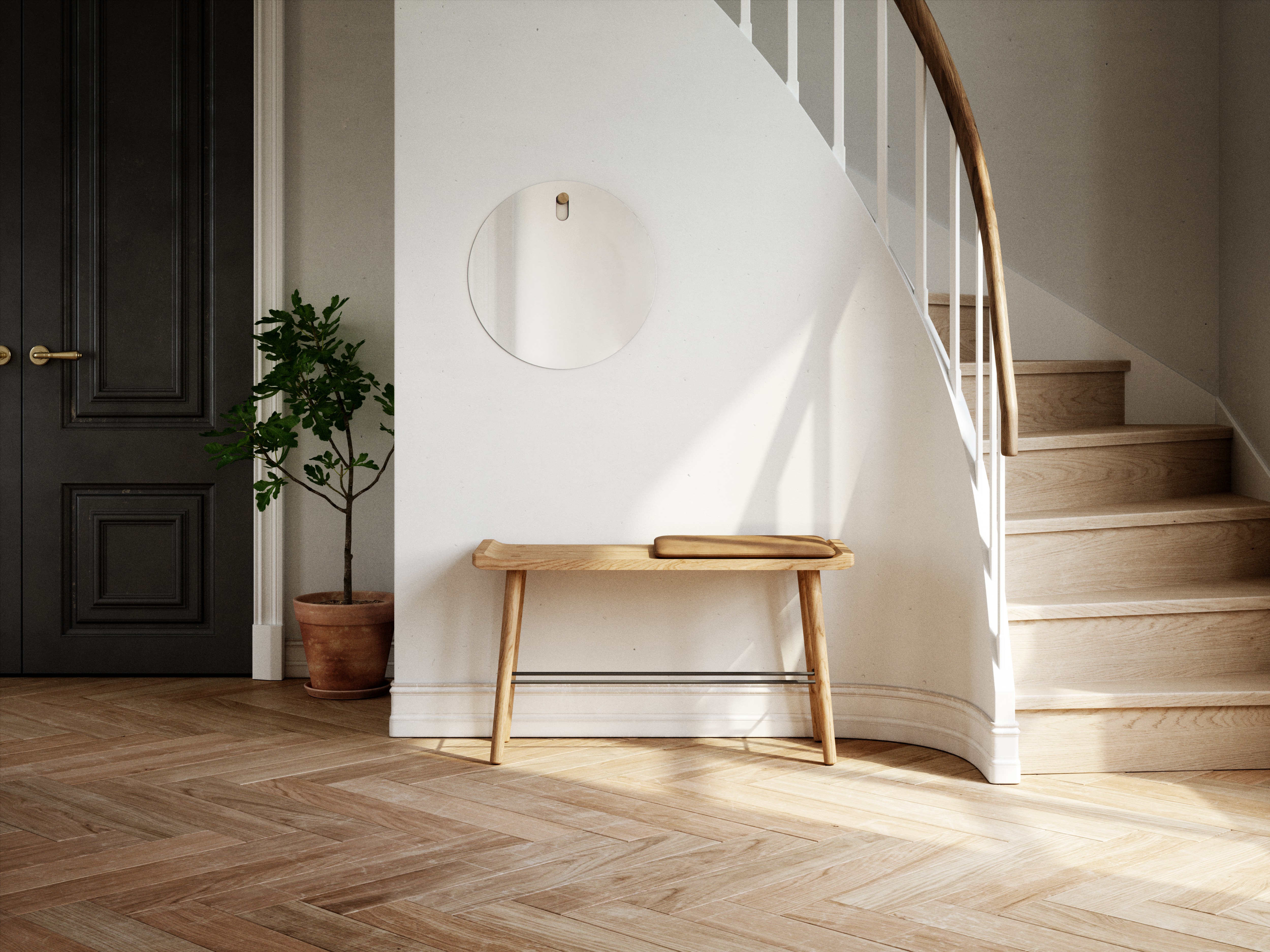 arrow_backTil oversigtenScala Bench Small er en bænk i et enkelt og let design med fine detaljer med baggrund i den skandinaviske snedkertradition. Den er lavet i europæisk egetræ med stålstivere, der giver styrke og samtidig kan fungere som enten fodstøtte eller skohylde. Der kan fastspændes en eller to Stool hynder på bænken i kvalitetslæder eller fine uldtekstiler fra Kvadrat i flere forskellige farver.