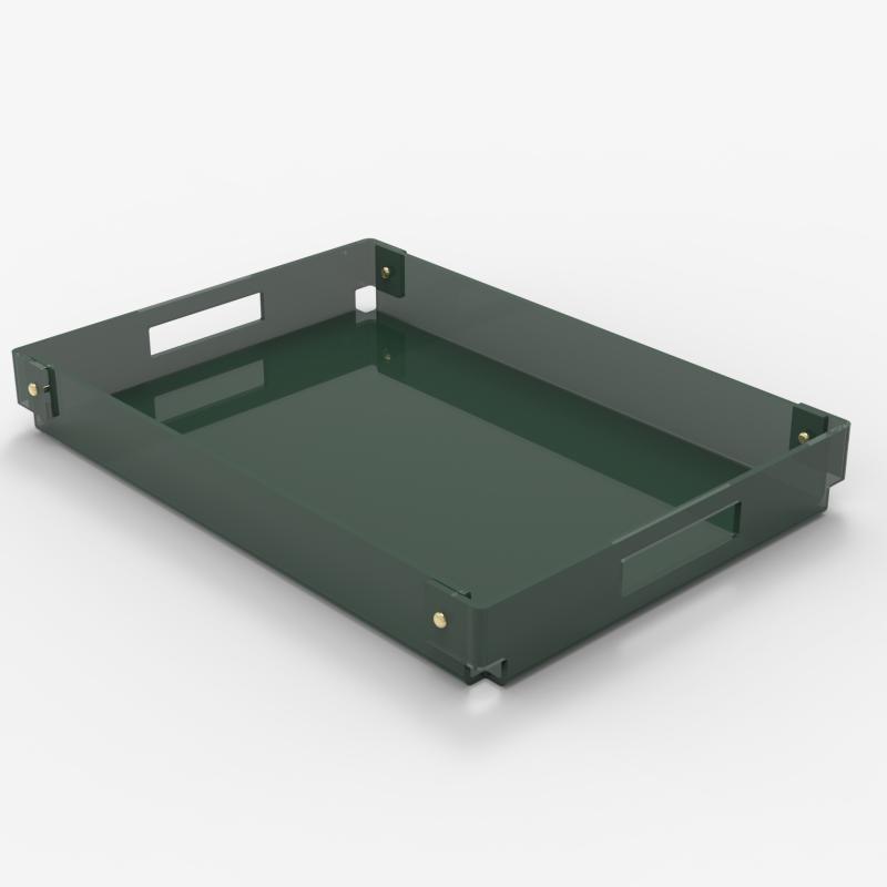 arrow_backTil oversigtenSERVE er en serveringsbakke lavet af kasseret akrylplader fra lastbilhjelme. Bakken er bukket i ét stykke og samlet med skruer, der står flot i kontrast til det gennemsigtige akryl.